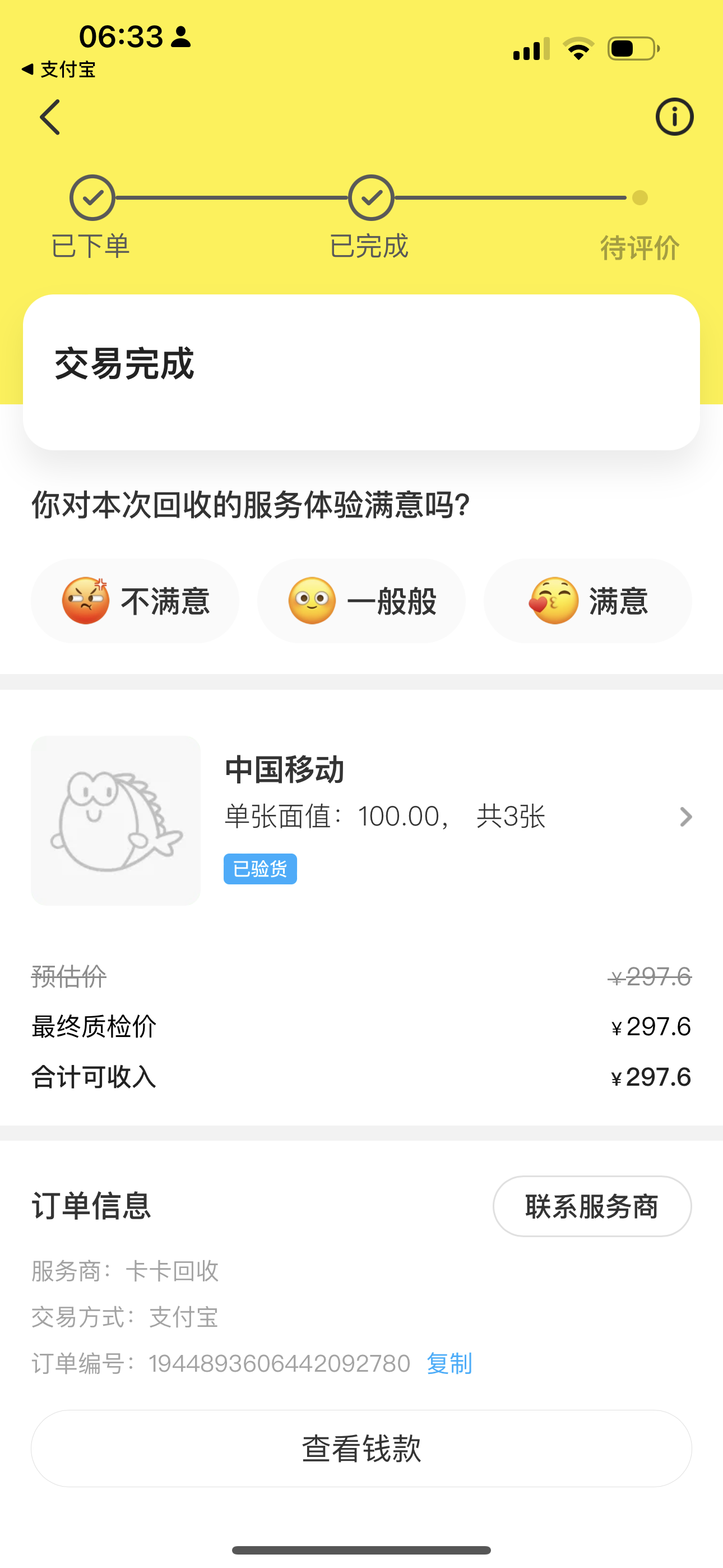 只要输入卡号卡密,大概2分钟之后就可以成功回收,然后官方就会帮钱直接转到你支付宝。