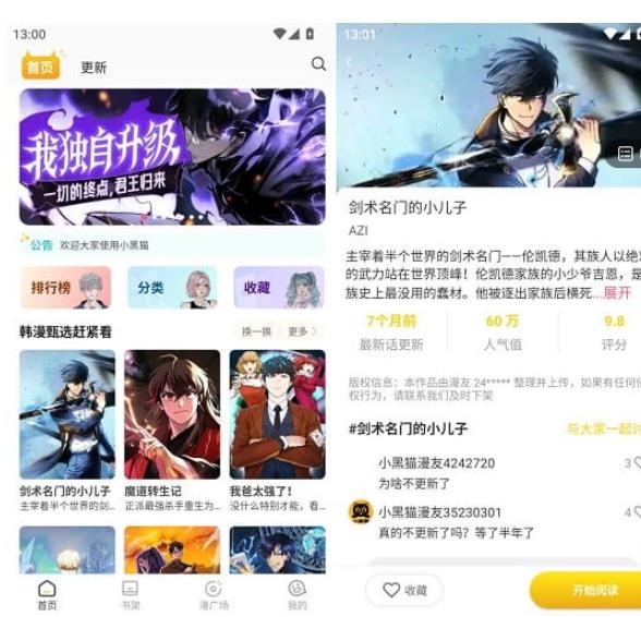 小黑猫漫画是一款真正实现免费追漫的神器,汇聚了全网最全面的漫画资源库。应用中涵盖国漫精品、日漫经典、韩漫新作以及欧美热门漫画等数万部作品,让您尽情享受无限追漫的乐趣。所有漫画资源均为正版免费,支持一键加入书架和创建个性化书单等功能,让您的追漫之旅更加轻松便捷。